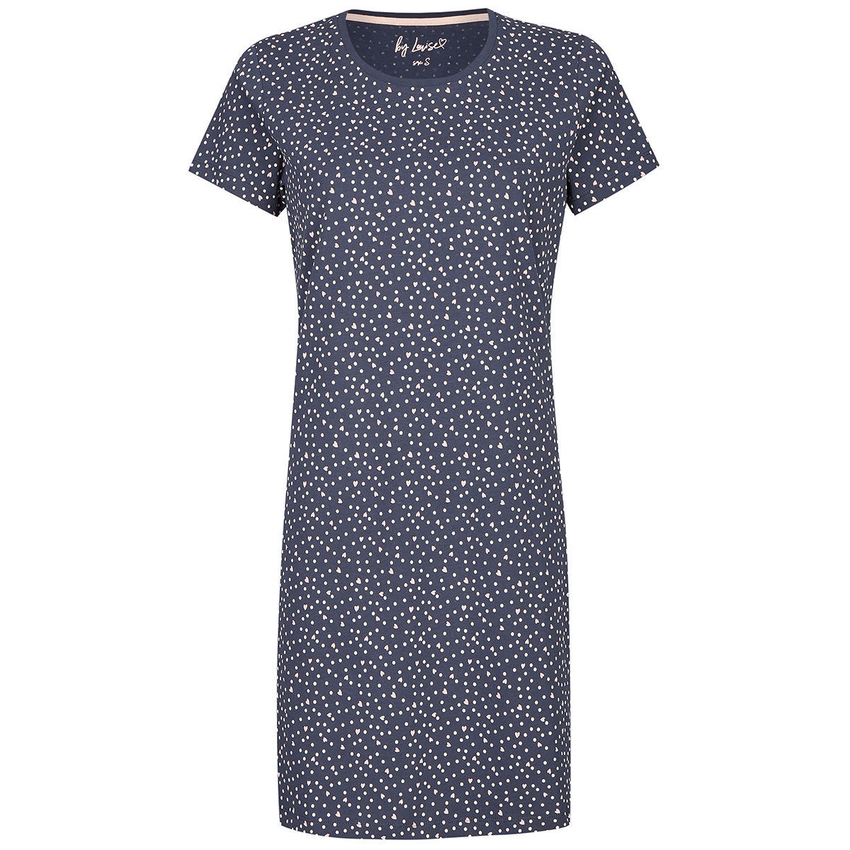By Louise By Louise Dames Nachthemd Hartjes Blauw Korte Mouw