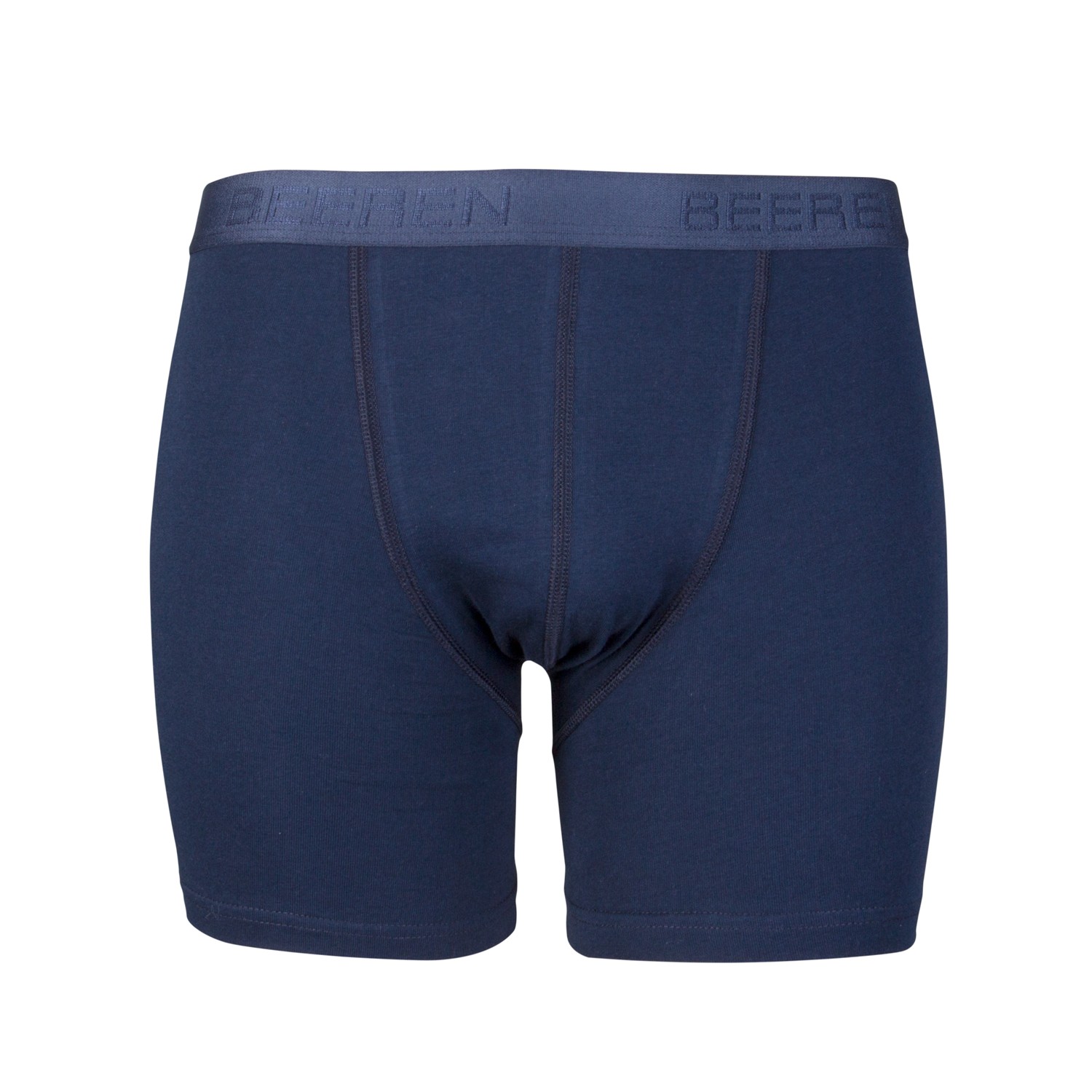 Heren boxershort met een iets langere pijp gemaakt van een elastische single jersey (95% katoen / 5% elasthaan). De pijpen zijn omgezoomd. De taille is afgezet met een 30 mm hoge elastische tailleband met de tekst Beeren Bodywear ingeweven. Deze boxershort is zonder sluiting. De kleur grijs heeft een zwarte taille band.