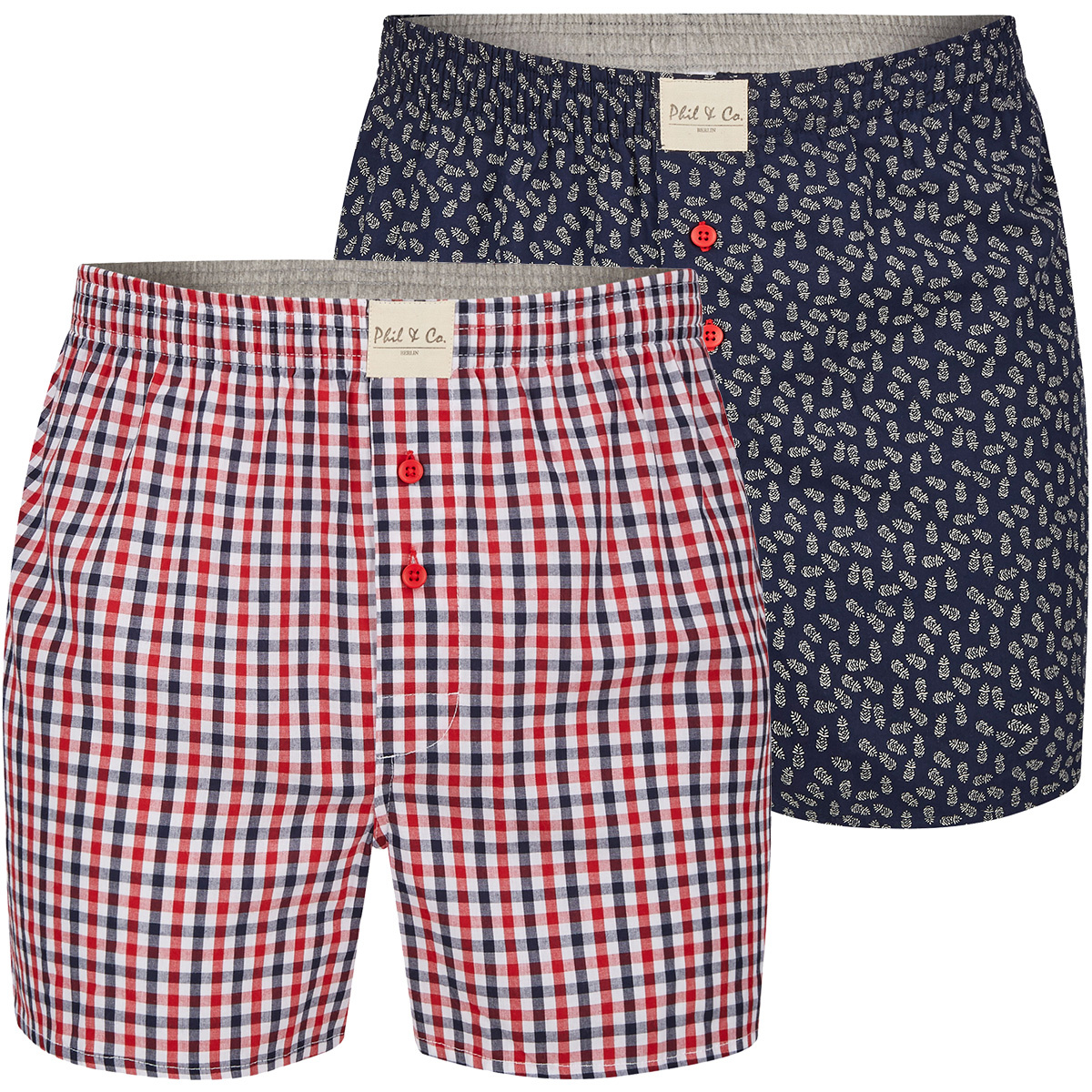 Comfortabele Phil & Co wijde boxershorts gemaakt van 100% katoen. De shorts zijn los en wijd. De zeer elastische, zachte tailleband zorgt voor weinig druk en zijn comfortabel om te dragen. De set bestaat uit twee boxershorts in verschillende klassieke des
