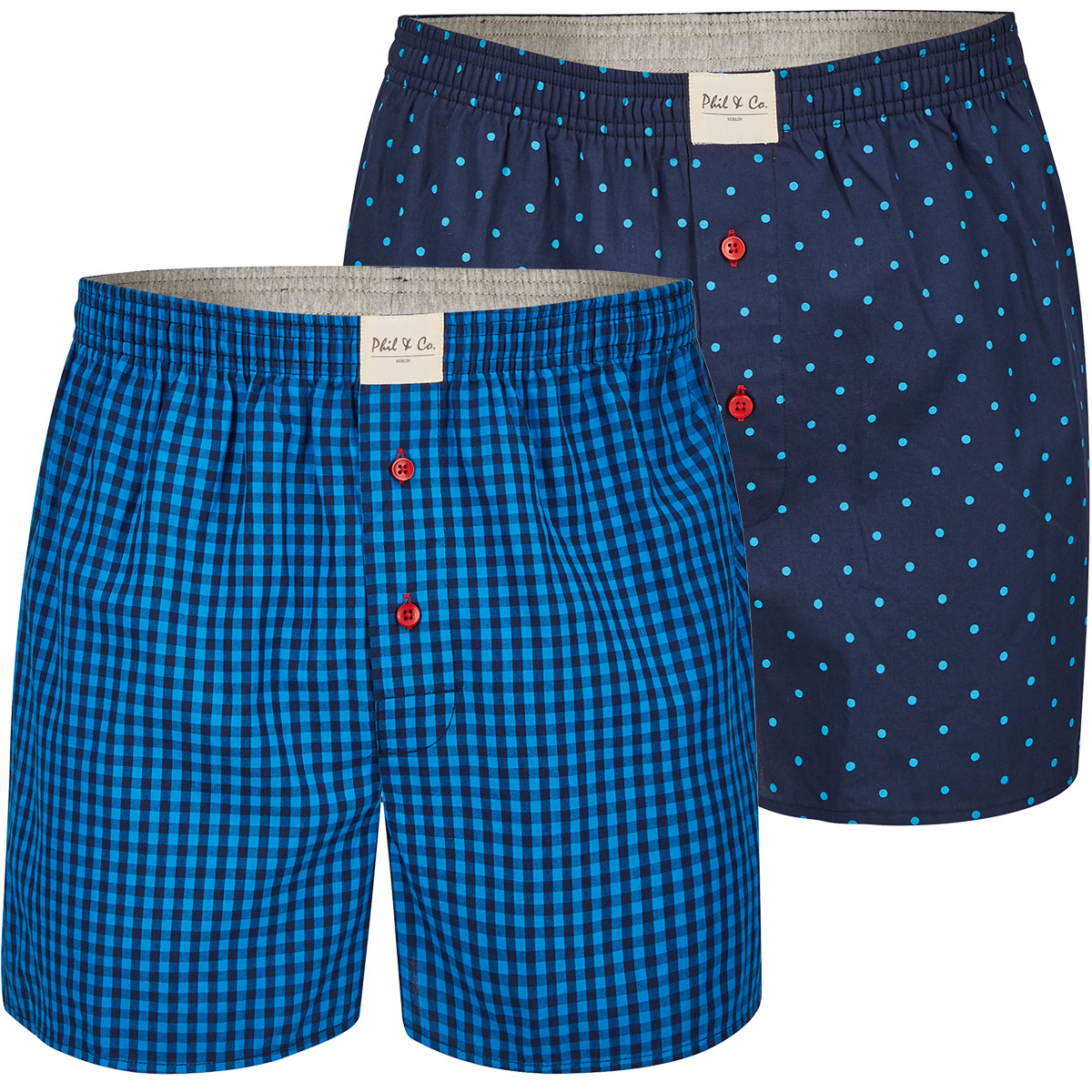 Comfortabele Phil & Co wijde boxershorts gemaakt van 100% katoen. De shorts zijn los en wijd. De zeer elastische, zachte tailleband zorgt voor weinig druk en zijn comfortabel om te dragen. De set bestaat uit twee boxershorts in verschillende klassieke des