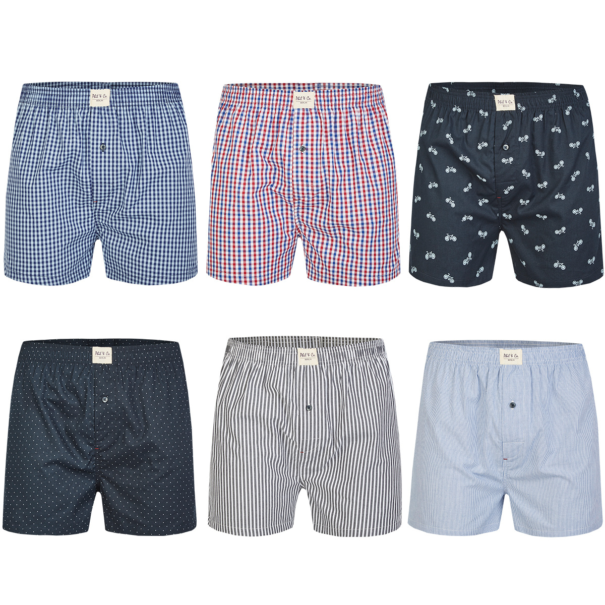 Comfortabele Phil & Co wijde / losse boxershort gemaakt van 100% katoen. De shorts zijn los en wijd. De zeer elastische, zachte tailleband zorgt voor weinig druk en is comfortabel om te dragen. De set bevat zes boxershorts in zes klassieke verschillende d