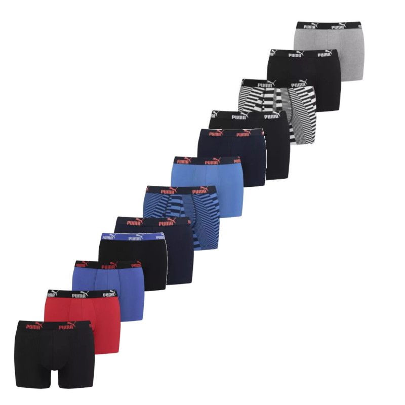 12 boxershorts van puma in verschillende kleuren en prints.