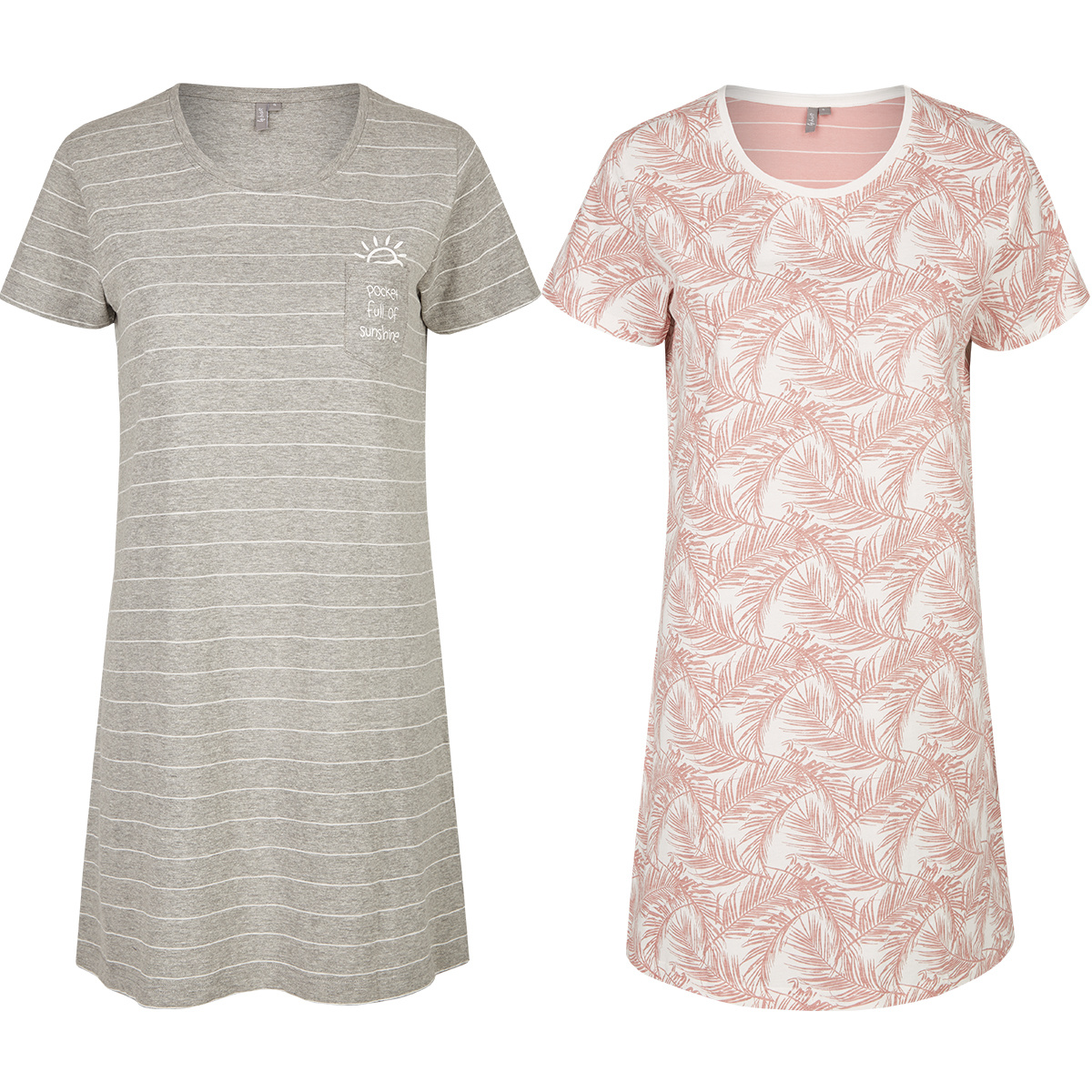 By Louise Nachthemd voor dames met korte mouwen, verpakking a 2 stuks in de kleuren grijs en roze. 100% katoen.