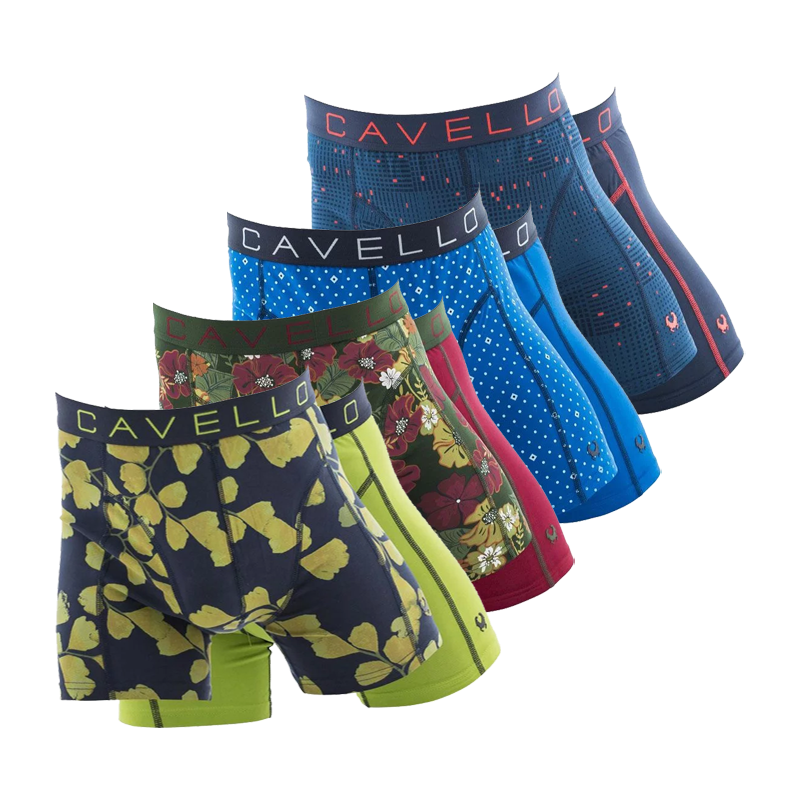 Cavello 8-pack heren boxershorts voordeelmix. Deze mega voordelige 8-pack van Cavello is de perfecte set boxershorts voor elke man. Vier effen boxers in het donkerblauw, blauw, rood en groen en vier boxers met hippe mannelijke printjes. Comfort en uiterlijk is waar Cavello voor gaat. Deze boxershorts zitten dus comfortabel maar zien er wel fashionable uit.