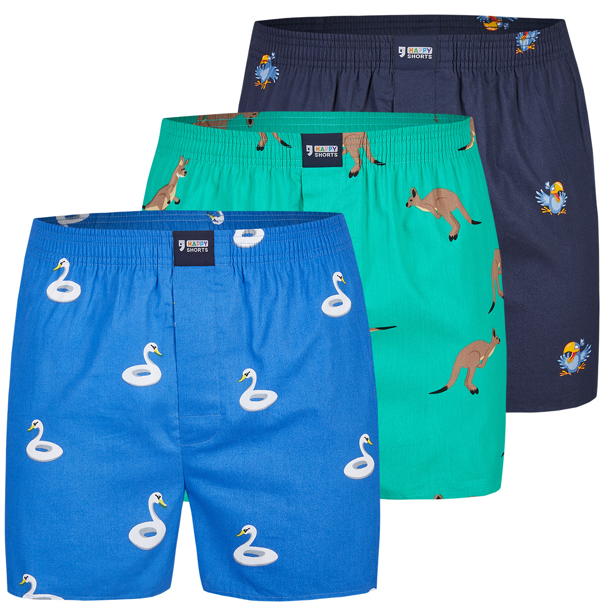 3 pack wijde boxershorts vol met dieren prints! De wijde boxershorts van Happy Shorts kenmerken zich