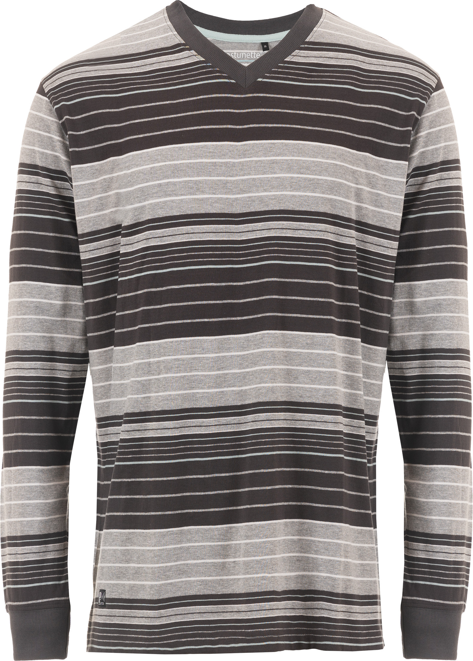 Heren pyjama/lounge shirt met lange mouw, kleine v hals en streep dessin van 95% katoen en 5% polyester.