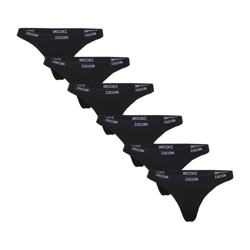 Een pakket met daarin 6 Zaccini Underwear strings. Met dit string-pack voor dames ligt er een goede basis in jouw kledingkast. Gemaakt van zachte katoenmix en een soft merkband.