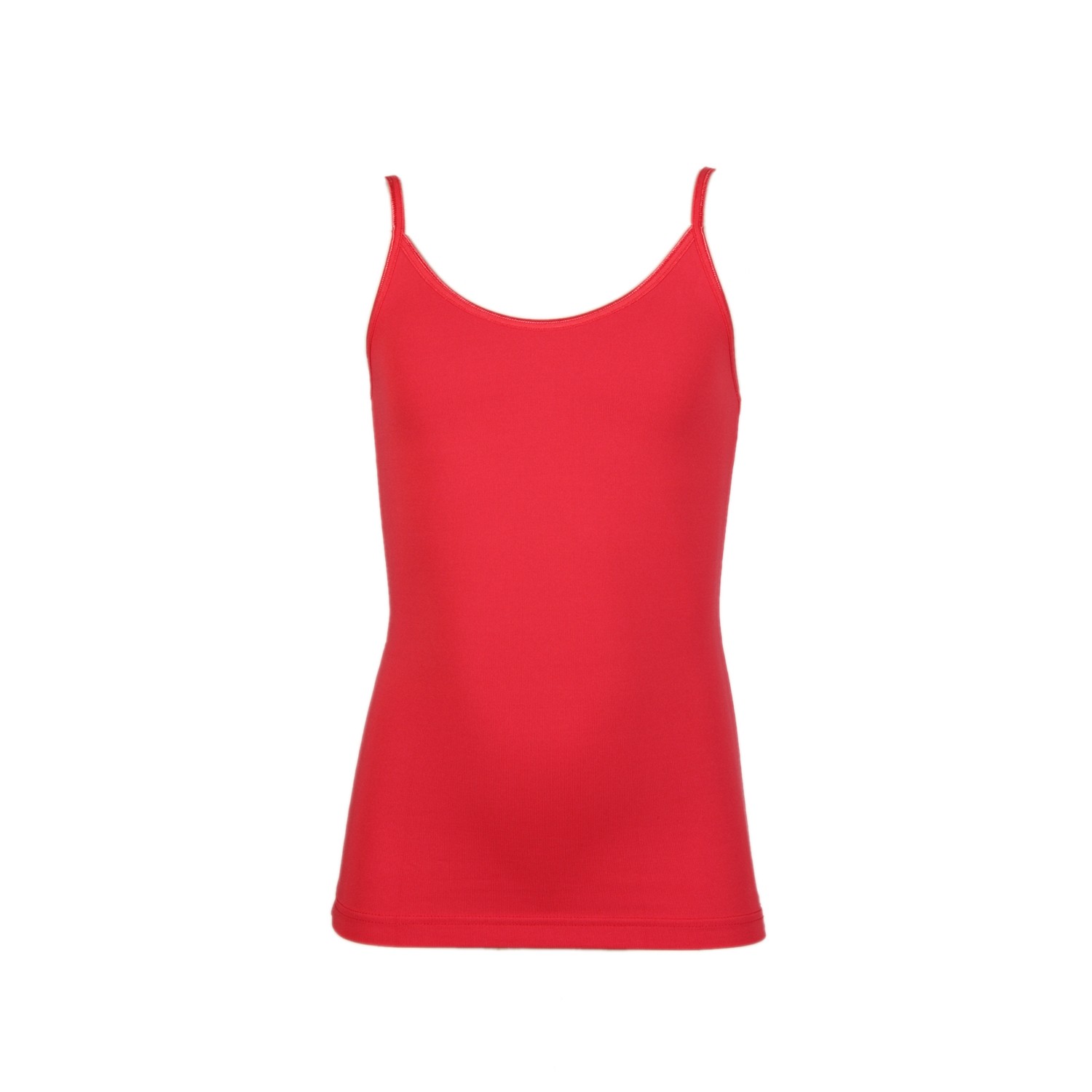 Meisjes topje met smal bandje in een mooie micro kwaliteit. 90% polyamide en 10% elastomeer. In wit, zwart en rood.