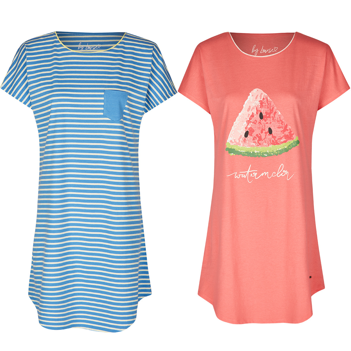 By Louise Nachthemd voor dames met korte mouwen, verpakking a 2 stuks in de kleuren rood en blauw.