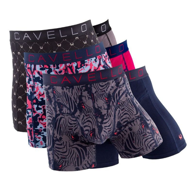 Cavello 6-pack boxershorts. Een mooie mix van zes verschillende boxershorts van Cavello. In de band staat de merknaam geweven. De boxershorts zijn gemaakt van fijn materiaal. Een mooie aanvulling aan je ondergoed collectie voor een voordeligeprijs!