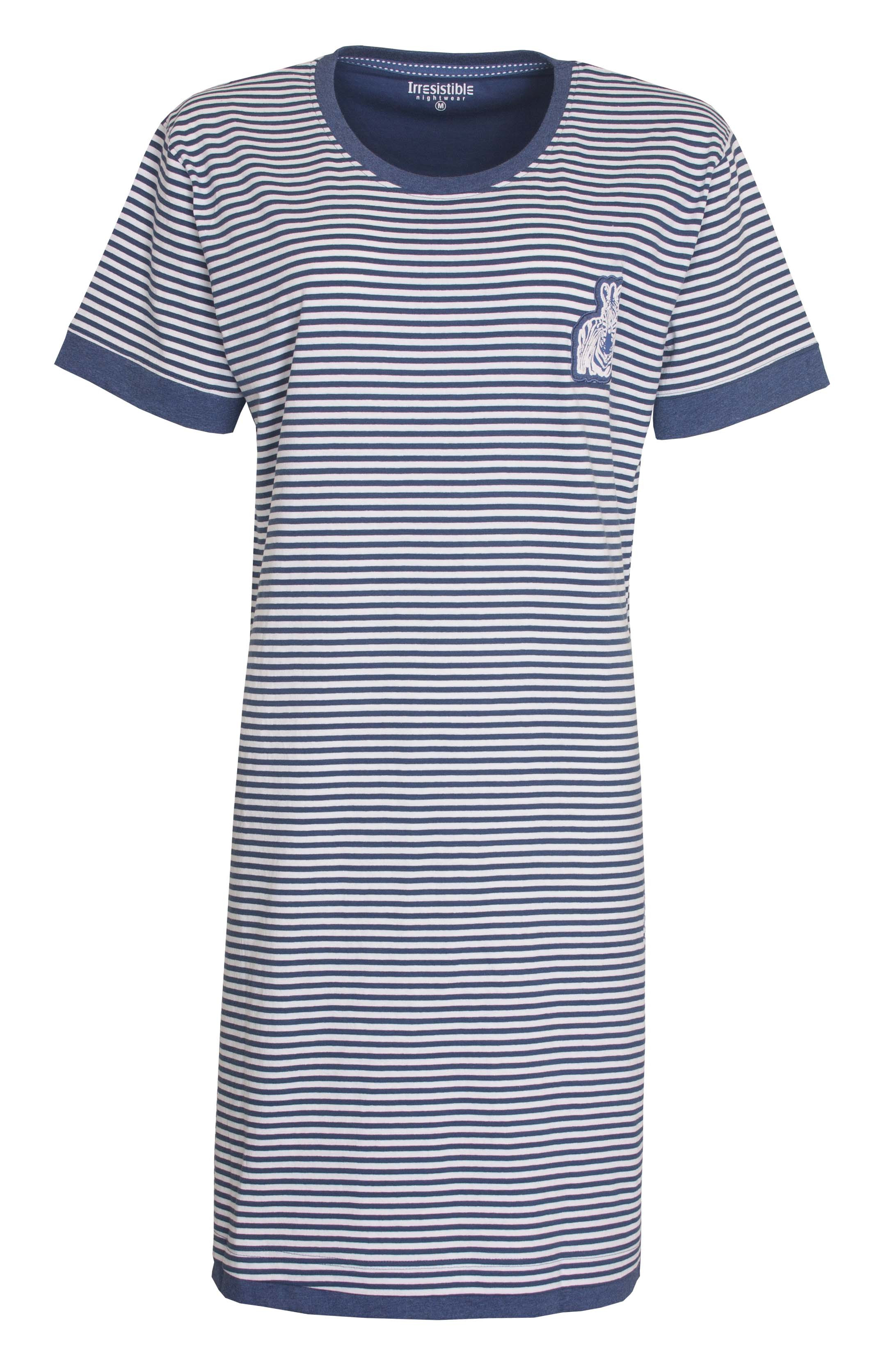Dames nachthemd van 100% gekamde katoen. Ronde hals met korte mouw in een streep dessin met zebra applicatie. Maat L heeft een lengte van 95 cm en een breedte van 54 cm. Maat advies S/38, M/40, L/42, XL/44 en XXL voor 46.