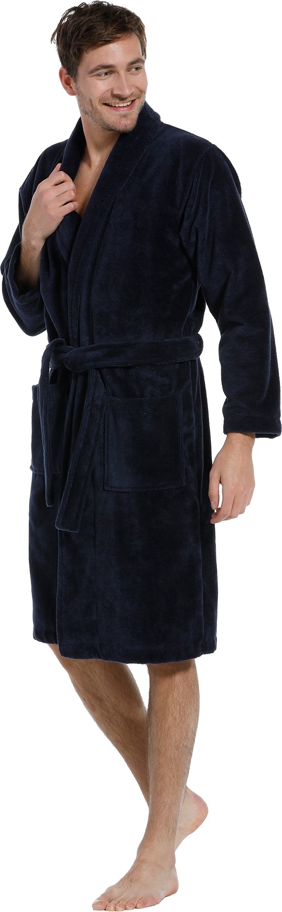 Heren badjas van het merk Pastunette, buitenkant micro, binnenkant badstof gevoerd. Dit is een ideale combinatie, micro draagt ligt en lekker warm en de katoenen badstof binnenkant draagt heerlijk op de huid. 57% katoen en 43% polyester. Met sjaalkraag, ceintuur en 2 steekzakken. Lengte 115 cm.