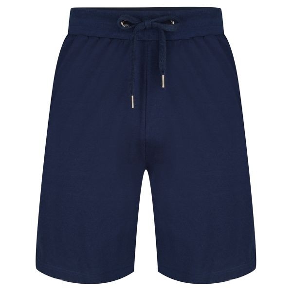 Heren korte broek met brede tricot boord met aanrijg koord en 2 steek zakken in 100% katoen.