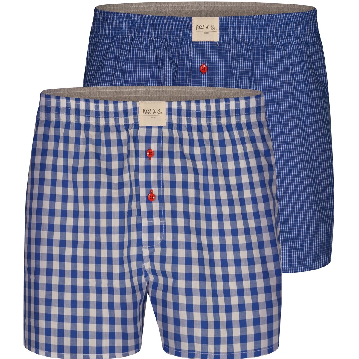 Comfortabele Phil & Co wijde boxershorts gemaakt van 100% katoen. De shorts zijn los en wijd. De zeer elastische, zachte tailleband zorgt voor weinig druk en zijn comfortabel om te dragen. De set bestaat uit twee boxershorts in verschillende klassieke des