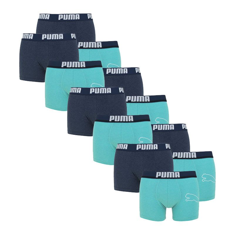Puma 12-pack boxershorts statement bold cat. Deze Puma boxershorts zijn voorzien van de kracht van haar eigen logo. De 12-pack heeft zes boxers in aqua en zes in het donkerblauw. Dankzij deze multi-pack kun je dat ene wasje wel even laten zitten, want nog genoeg in de kast! De boxers zijn gemaakt van katoen en elastaan. Ga voor de beste prijs/kwaliteitverhouding en shop deze mooie boxershorts!