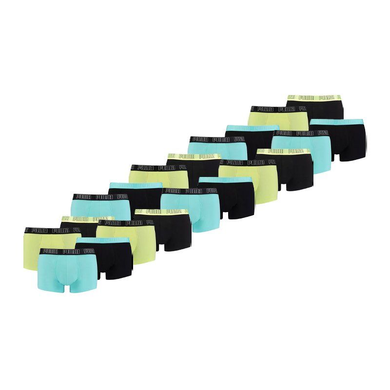 Puma 20-pack boxershorts basic trunks. Twintig mooie boxershorts van Puma in het model trunk (de pijpjes zijn korter). In de elastische tailleband staat het merk "PUMA" geweven. De boxershorts zitten comfortabel en de stof voelt stevig aan. Materiaal 95% katoen en 5% elastaan.